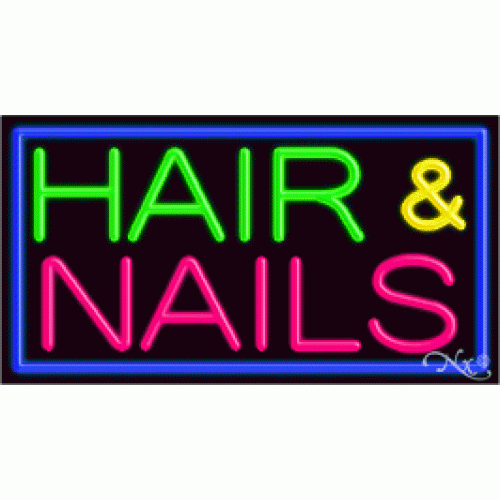 Arter Neon 11083 Business Neon Sign - Hair and Nails Blue
