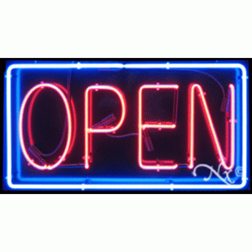 Arter Neon 11101 Business Neon Sign - Open Border Red and Blue