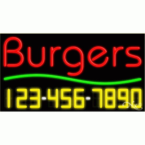Arter Neon 15018 Neon Sign with Phone Number - Burgers Red